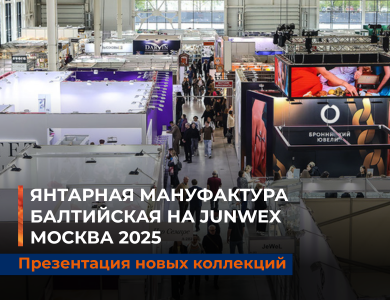 Янтарная Мануфактура Балтийская представит новую коллекцию украшений из янтаря на международной выставке JUNWEX в Москве с 24 по 28 сентября. Посетители смогут увидеть эксклюзивные украшения ручной работы, в том числе новую коллекцию ЛЕБЕДЕВ